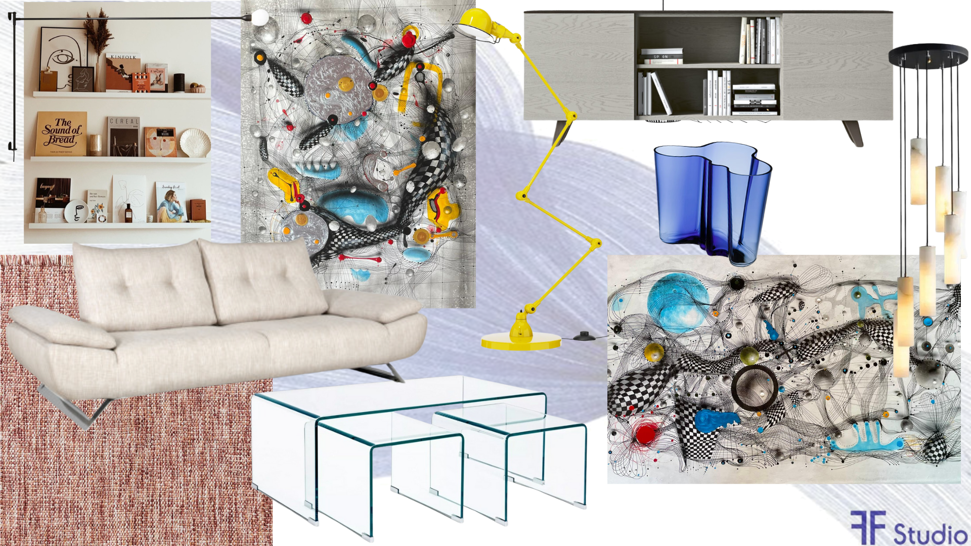 Ce projet de coaching déco est né d’une volonté claire : repenser une pièce de vie en donnant une place centrale à l’art.